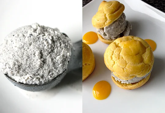 - Savory Sweet Living - Black Sesame Ice Cream with Profiteroles and Yuzu Ginger Curd — "I chose the black sesame ice cream as I am a huge fan of black sesame. It has such a distinct flavor and I love the nuttiness of it." Margaret did something a little different: after making the ice cream, she used it as a filling for profiteroles and with yuzu ginger curd on the side!